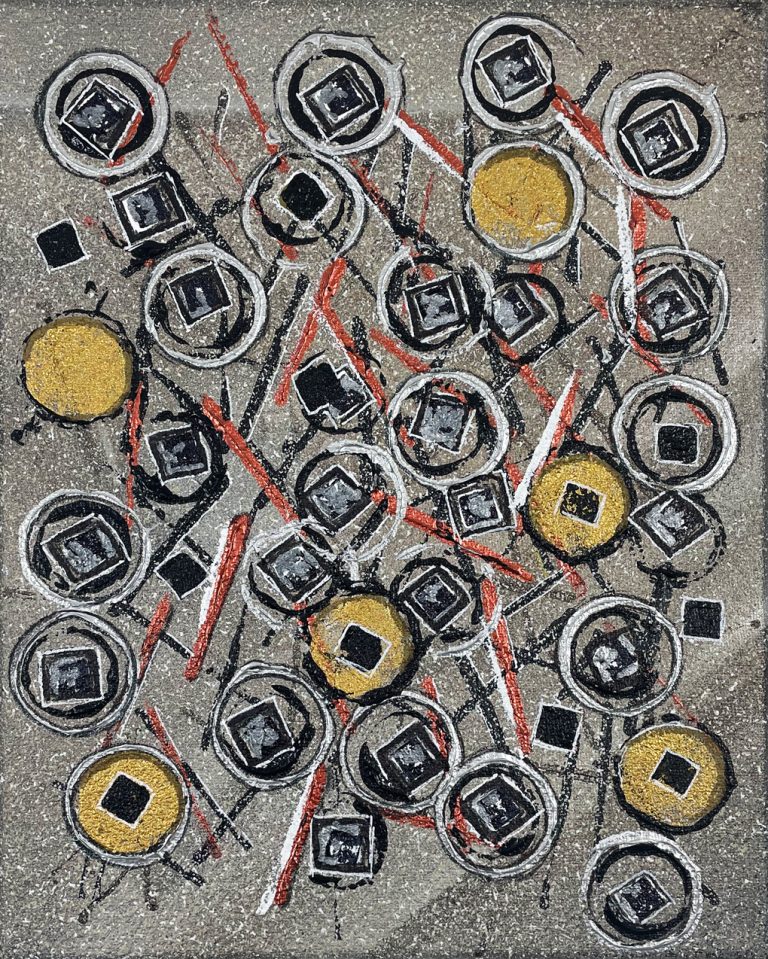 De las series inspiradas en el espacio, y especialmente en galaxias lejanas, las Andrómedas buscan destacar formas simples para crear complejos sistemas de colores, texturas y composiciones. Esta serie de ensayos de color van incorporando diversos materiales para lograr una mejor integración entre la pintura y la textura.