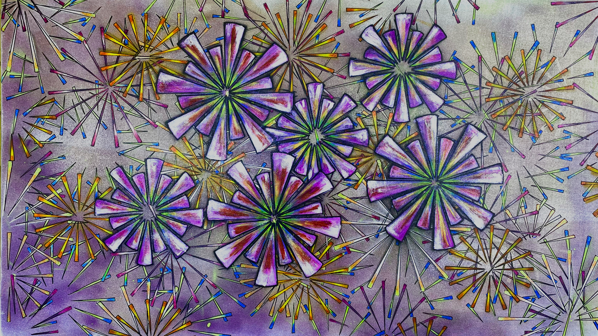 Año Nuevo es un juego de color, lleno de energía inspirado en los fuegos artificiales propios de las fiestas en Diciembre.
